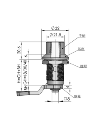 結(jié)構(gòu)說明:90度旋轉(zhuǎn)實現(xiàn)開啟或鎖閉,